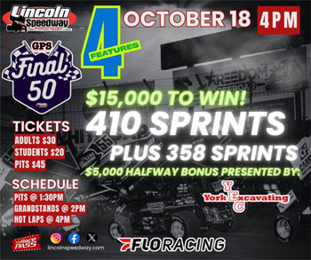 Oct. 18 with the Dutch Hoag Memorial at Outlaw Speedway, paying
