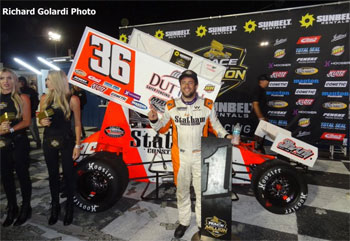 Justin Grant take the 30 lap Amsoil USAC sprint car feature at Red Hill