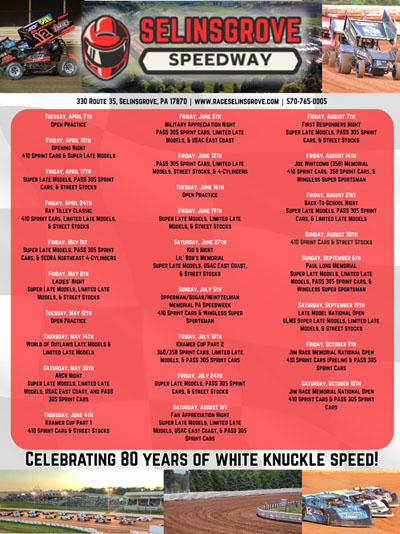 schedule.” Selinsgrove Raceway Park, the inner 1/5th mile dirt oval