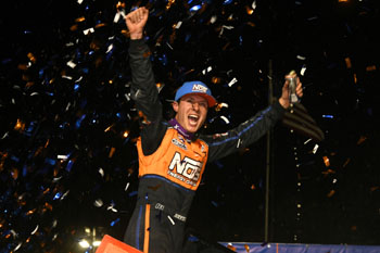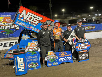 Brady Bacon wins the Monday ASCS feature at Volusia Speedway Park FL.