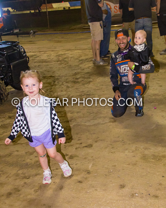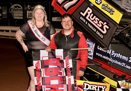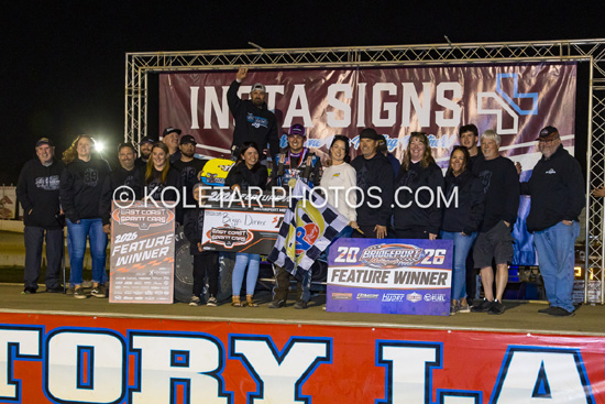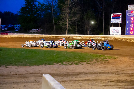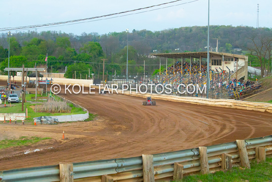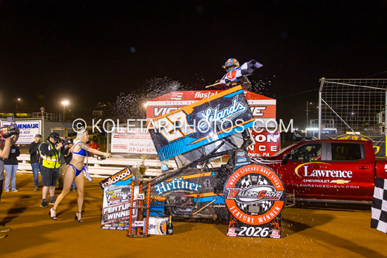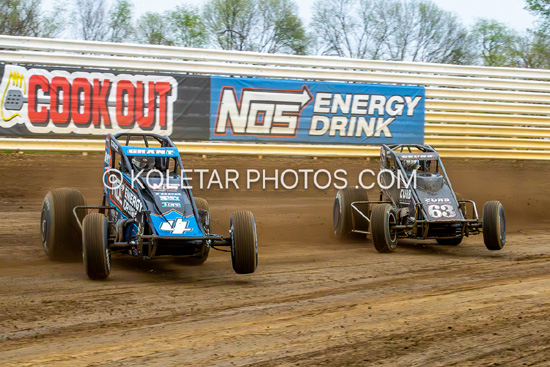 Bradley Galedridge wins the Indiana Racesaver feature at Lawrenceburg,In. sat. 4-25-26. Mark Miefert