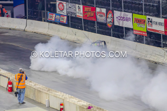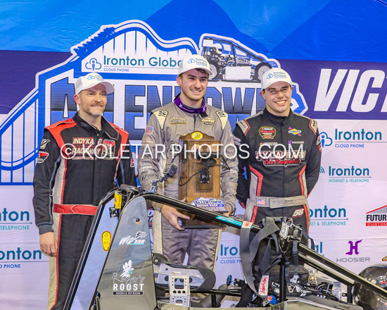 Kyle Cummins wins the USAC Greg Staab Memorial at Lawrenceburg,In Fri. 10-10-25. Mark Miefert